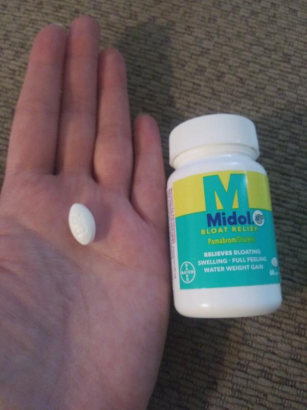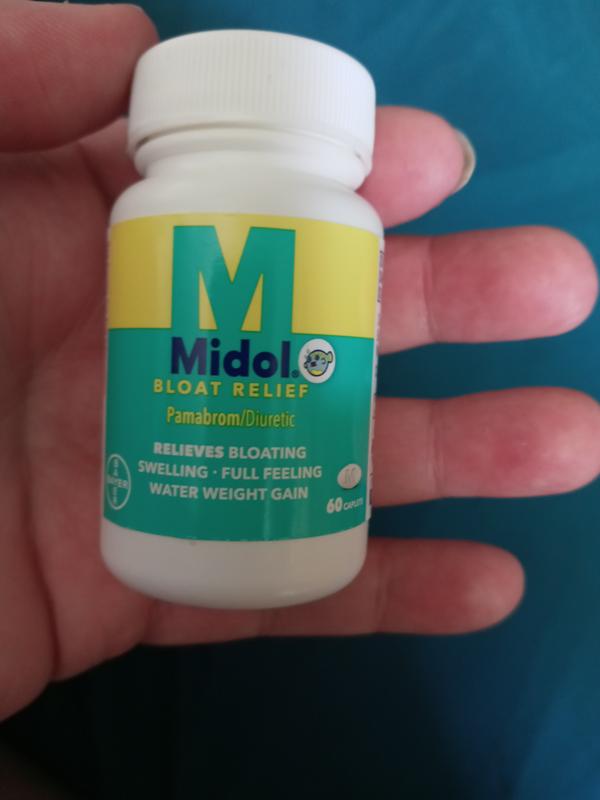 Midol Complete also contains caffeine which is found in coffee tea and many soft drinks and the antihistamine pyrilamine maleate which Bayer claims reduces the bloating anxiety and irritability associated with PMS. Midol Bloat Relief contains pamabrom a diuretic for period bloating relief without additional active ingredients. For effective relief from bloating swelling full feeling and water weight gain related to PMS and your period.